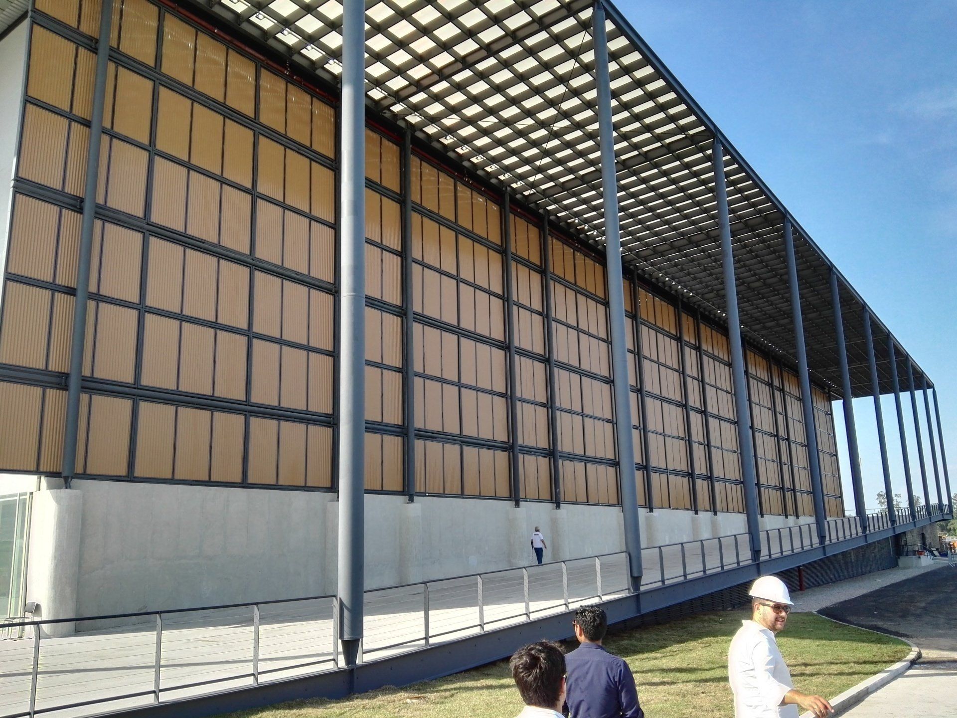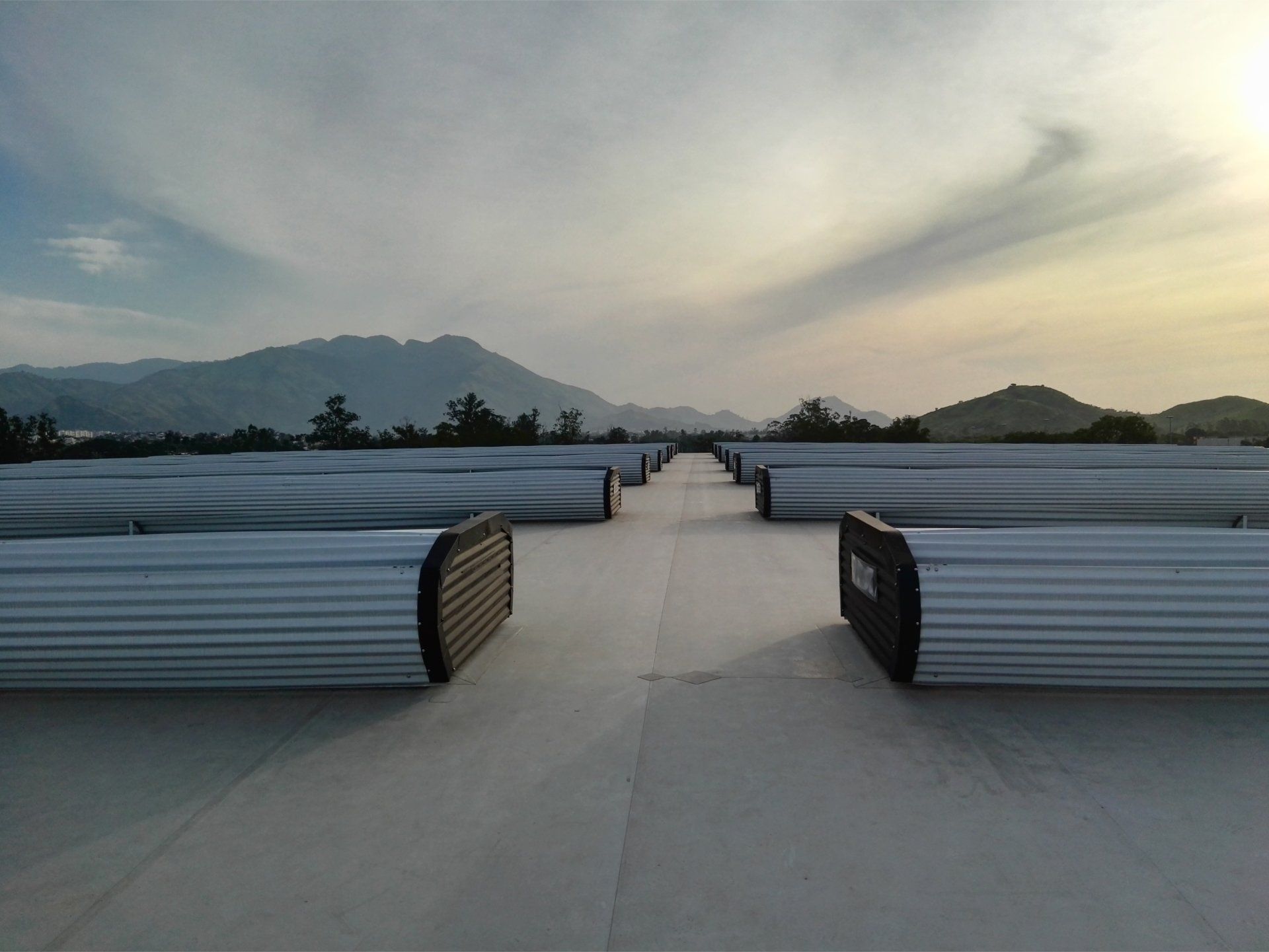 Tipo de trabalho: Sistema de cobertura deck com membrana de TPO, fachada metálica e teto falso acústico.