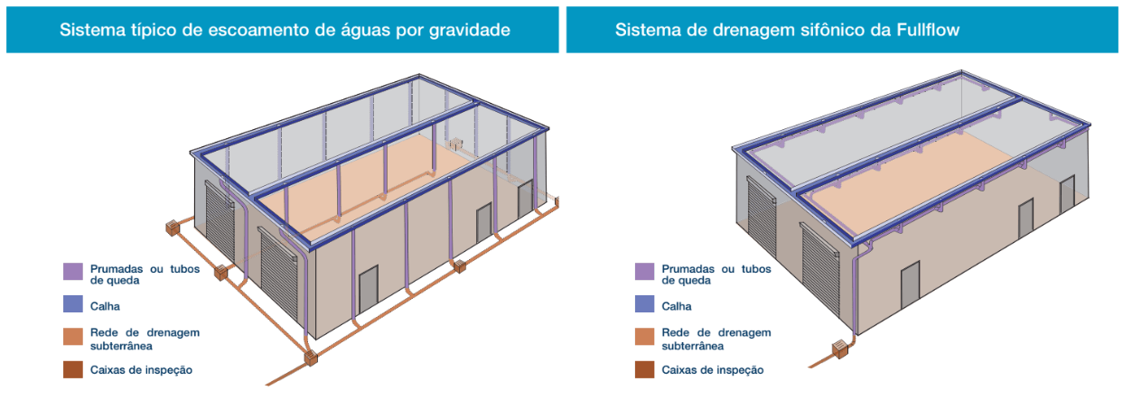 O Fullflow é um sistema de drenagem de água pluvial que tem um processo muito simples e inovador: é projetado para rápida sucção de água, da cobertura até à rede de drenagem subterrânea. O sistema anti-vórtice proporciona uma excelente resposta às construções com coberturas grandes, otimizando as instalações e o espaço arquitetónico. Com grande capacidade de drenagem, uma prumada Fullflow pode drenar uma cobertura com superfície até oito vezes maior do que um sistema convencional (por gravidade)